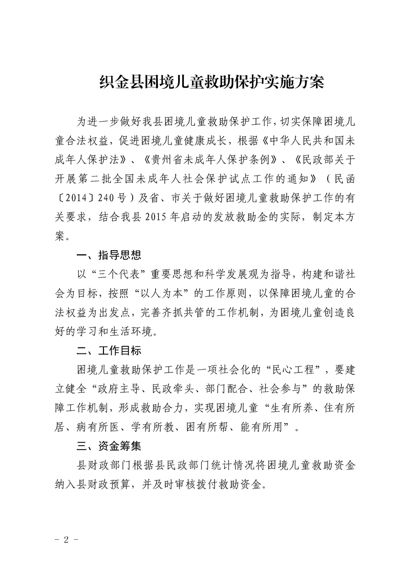 县人民政府办公室关于印发织金县爱你困境儿童救助保护实施方案的通知